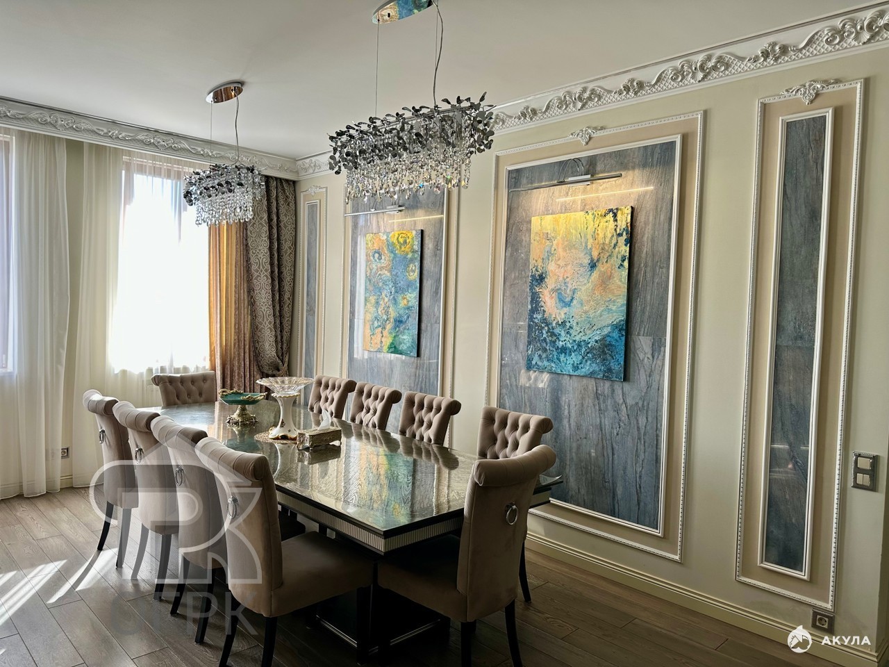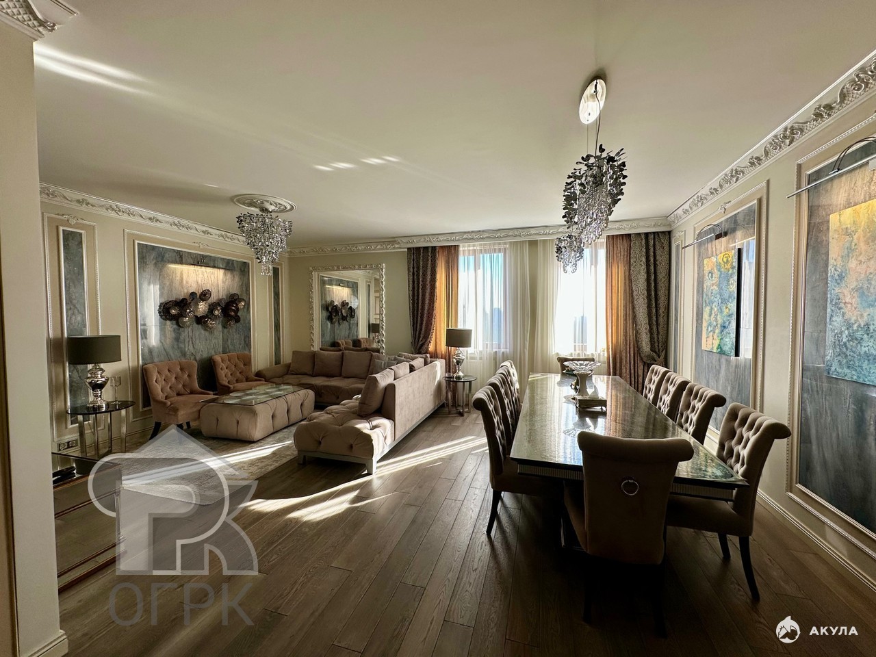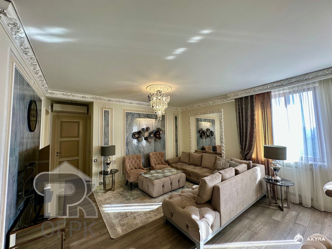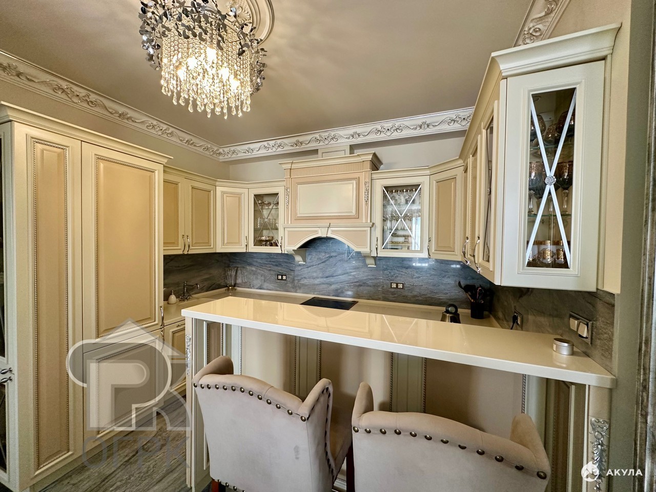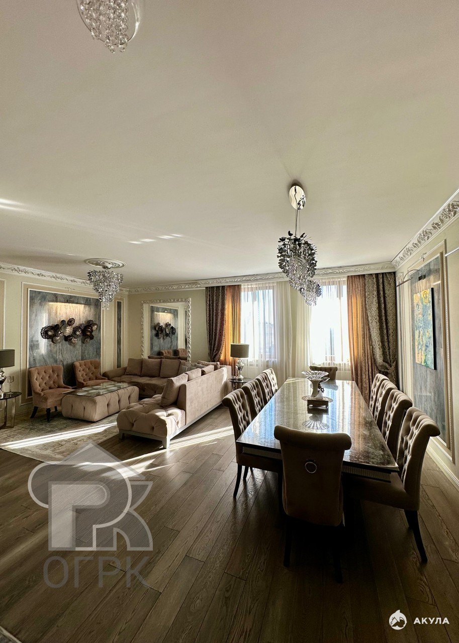 Просторная кухня-гостиная станет центром притяжения для всей семьи, а дизайнерский евро-ремонт с итальянской мебелью и хрустальными люстрами подчеркнёт ваш безупречный вкус.